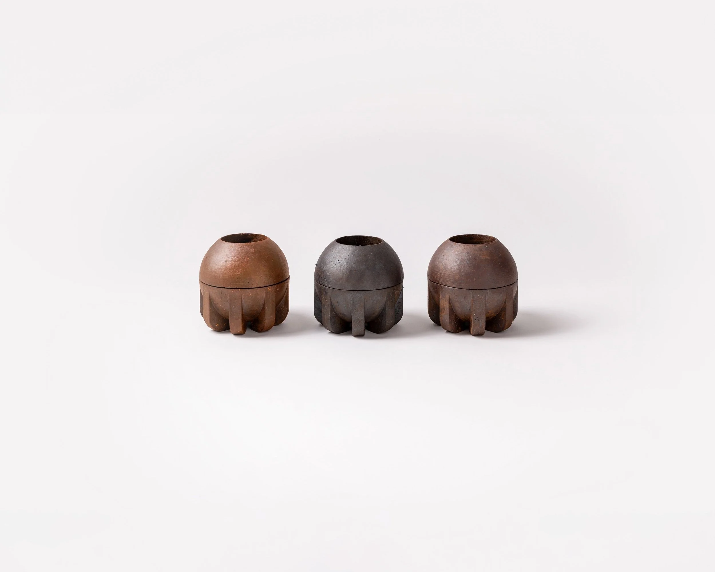 Available in three distinct Etruria marl clay finishes, Censer takes its colour from natural processes. The precise control of oxygen in the kiln causes a chemical reaction in the clay resulting in these colour variations. No artificial colourants or dyes are used, only heat and clay. Censer functions as both a stationary or suspended incense holder and is compatible with a wide variety of incense types, including cones, coils, and resin.